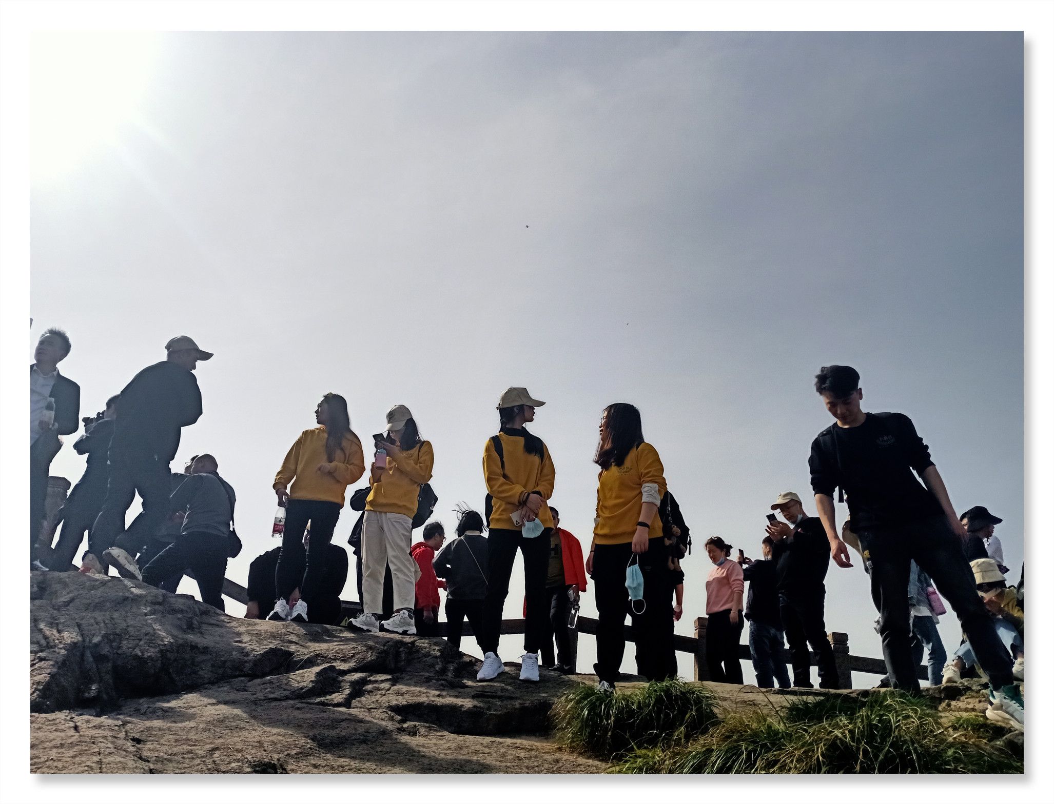 行程第一天,大家在導(dǎo)游的帶領(lǐng)下游覽了花臺景區(qū)。景區(qū)內(nèi)風(fēng)光壯美,景色綺麗,以奇峰怪石、云海霧凇、花的海洋而著稱,素有“靈山九華,美在花臺”的說法。景區(qū)內(nèi)有我國品種集中的稀有高山杜鵑花,紅、黃、白、紫等爭相綻放,爭奇斗艷,鑲嵌在山野絕壁中,宛若“天街花市”,儼然一副華美的山水畫。然而山上這個時節(jié)的杜鵑花仍是花骨朵兒,大家并未得觀百花爭艷的絕美景色。不過山上奇特的地質(zhì)地貌,神奇地構(gòu)成了九華山著名的“天然睡佛”奇觀。大家圍繞睡佛時而奮力攀登、時而漫步臨山棧道。登臨花臺頂,一覽九華全景,更可以“親近睡佛,聆聽佛音”,與神奇的“睡佛”零距離接觸,得大佛護持、倍感靈氣。